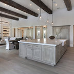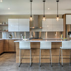 like the wood cabinets, countertops and the lights over the island