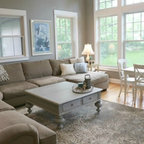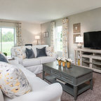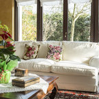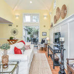 Новые идеи обустройства дома: гостиная комната в стиле шебби-шик с белыми стенами — Houzz
