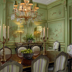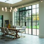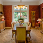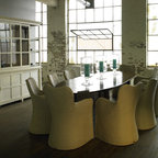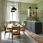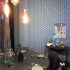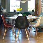 Идея дизайна: столовая в стиле ретро с белыми стенами — Houzz