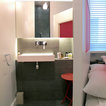 A l'origine deux pièces et un couloir, le double séjour et la cuisine ont été ouverts pour créer une grande pièce à vivre.