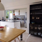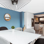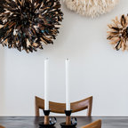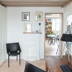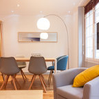 Неиссякаемый источник вдохновения для домашнего уюта: отдельная столовая среднего размера в скандинавском стиле с белыми стенами и бетонным полом без камина — Houzz