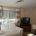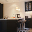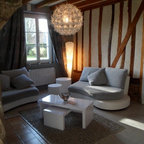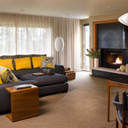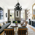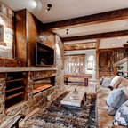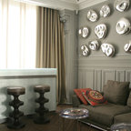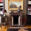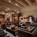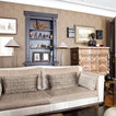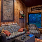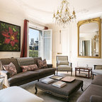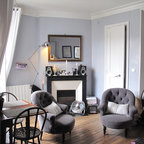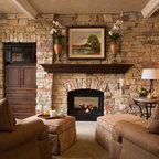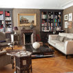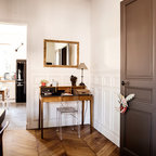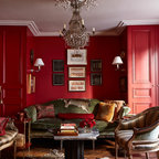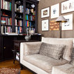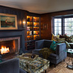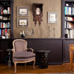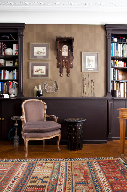 Новый формат декора квартиры: изолированная гостиная комната среднего размера в стиле фьюжн с библиотекой, коричневыми стенами и паркетным полом среднего тона без камина, ТВ — Houzz