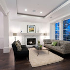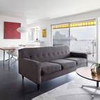 Couch, wood floor, light from window