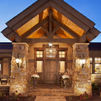 Неиссякаемый источник вдохновения для домашнего уюта: фасад дома в стиле рустика с облицовкой из дерева — Houzz