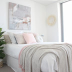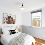 Создайте стильный интерьер: спальня среднего размера в скандинавском стиле с белыми стенами, ковровым покрытием и бежевым полом - последний тренд — Houzz