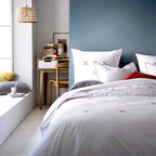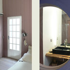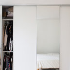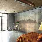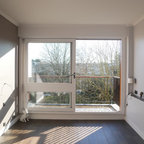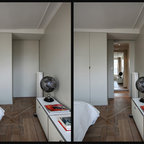 Выдающиеся фото от архитекторов и дизайнеров интерьера: спальня в современном стиле с бежевыми стенами и светлым паркетным полом — Houzz
