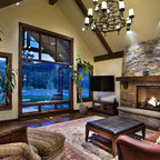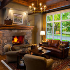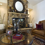 Stone fireplace surround - terminates at mantel