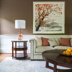 love this wall color. Looks great and accents woodtones beautifully. Makes me want a leather couch.