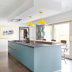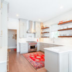 The false beam and floating shelves were custom made by Leroy. The false beam was not required but it separated the ceiling textures.