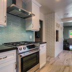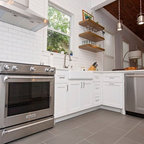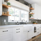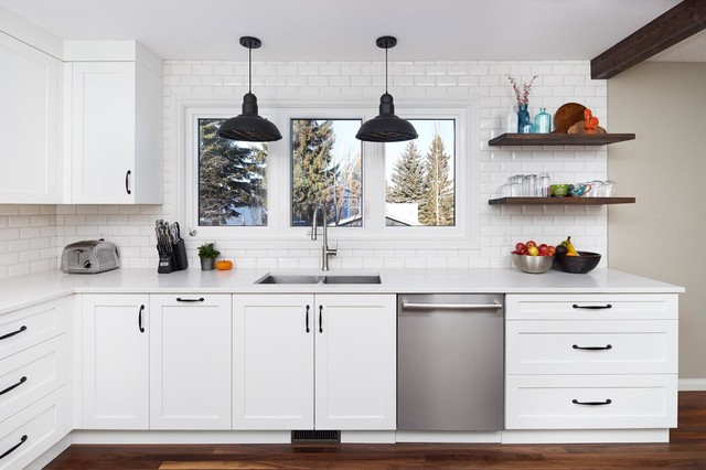 Classic subway tile up around the window. French Bistro Look. Matte black hardware.