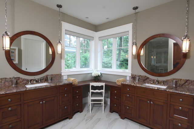Свежая идея для дизайна: ванная комната в классическом стиле с врезной раковиной - отличное фото интерьера — Houzz