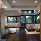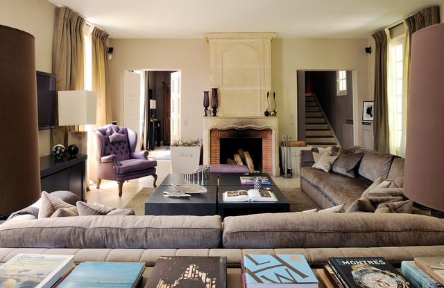 На фото: гостиная комната в стиле фьюжн с — Houzz