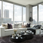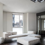 Свежая идея для дизайна: большая открытая гостиная комната в стиле модернизм с бетонным полом, серыми стенами и серым полом без камина, ТВ - отличное фото интерьера — Houzz