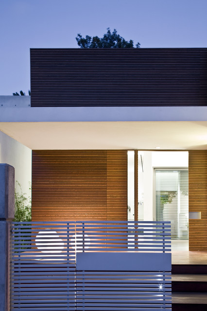 Пример оригинального дизайна: фасад дома в стиле модернизм — Houzz