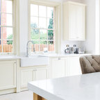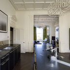 A double height kitchen with rolling library style steel ladder, brings dramatic style to this space.