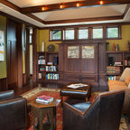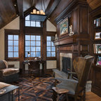 Feel and rich dark woods. Chandelier.