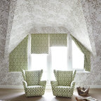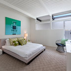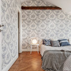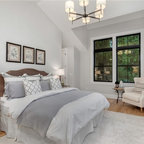 Пример оригинального дизайна: спальня в стиле кантри с белыми стенами — Houzz