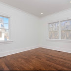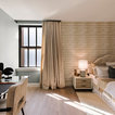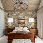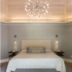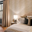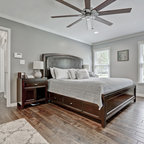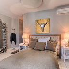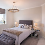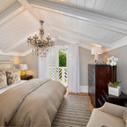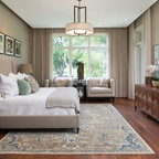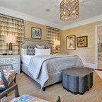 Идея дизайна: хозяйская спальня среднего размера в стиле неоклассика (современная классика) с бежевыми стенами, светлым паркетным полом и бежевым полом без камина — Houzz