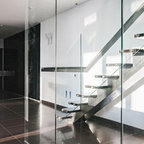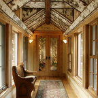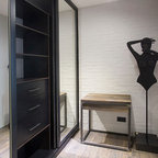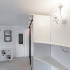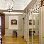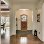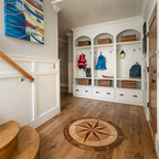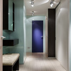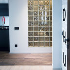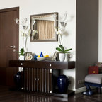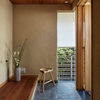 Создайте стильный интерьер: прихожая в стиле модернизм с желтыми стенами и коричневым полом - последний тренд — Houzz