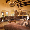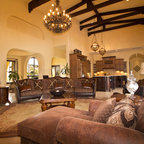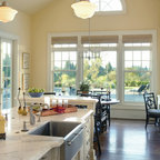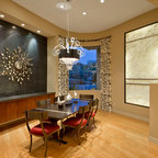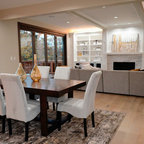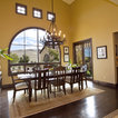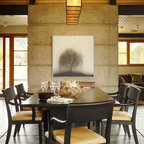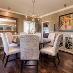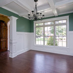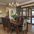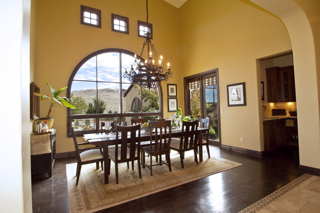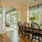 Пример оригинального дизайна: отдельная столовая в стиле кантри с бежевыми стенами и темным паркетным полом — Houzz