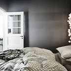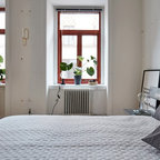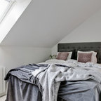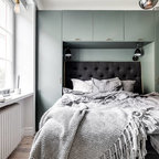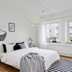 Стильный дизайн: гостевая спальня среднего размера в скандинавском стиле с белыми стенами и паркетным полом среднего тона - последний тренд — Houzz