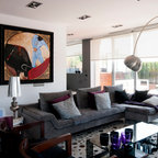 На фото: гостиная комната в стиле фьюжн — Houzz