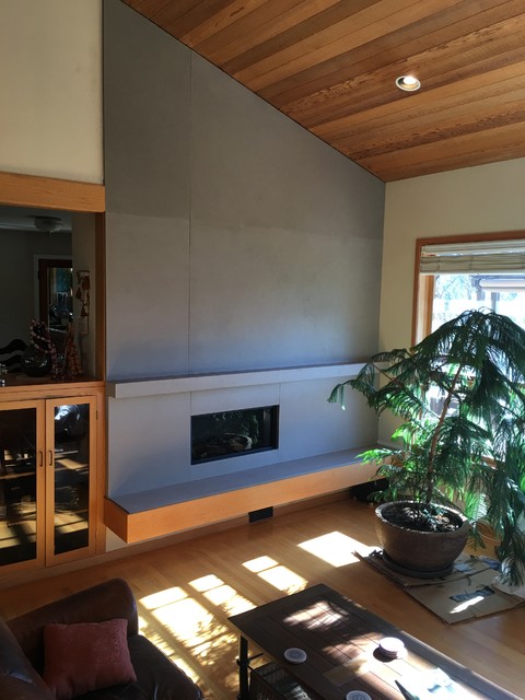 AFTER: This Fireplace unit was custom made for one of our clients in Los Angeles. All panels were made to specific size, including the hearth and the ledge. Incredible makeover.