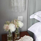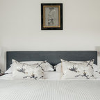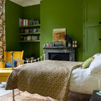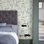 Неиссякаемый источник вдохновения для домашнего уюта: спальня в стиле современная классика с синими стенами и ковровым покрытием — Houzz