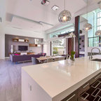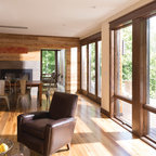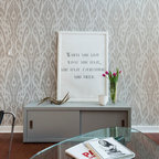 Выдающиеся фото от архитекторов и дизайнеров интерьера: гостиная комната в современном стиле с серыми стенами и камином — Houzz