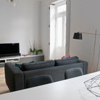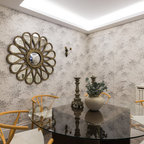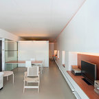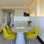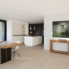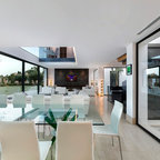Неиссякаемый источник вдохновения для домашнего уюта: кухня-столовая среднего размера в современном стиле с белыми стенами без камина — Houzz