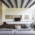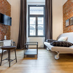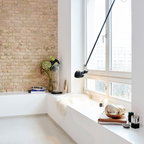 7. Системы хранения в подиумеСкорее всего, вы не раз читали, что подиум и разница в уровне пола помогают увеличить полезное пространство, и наверняка толком не поняли, как это работает. Идеальная иллюстрация умного зонирования из Эрфурта: зона гостиной расположена на возвышении, а в подиуме предусмотрена глубокая полка для хранения. Таким образом, владельцы апартаментов экономят место на установке шкафа — не говоря уже о том, что пространство выглядит в разы оригинальнее. ЧИТАТЬ О ПРОЕКТЕ С ФОТО…Houzz Германия: Белый куб в фабричном лофте