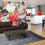 Архитектор спланировал и осуществил все переустройство помещений бывшей фабрики сам и теперь живет здесь со своей семьей. В этих корпусах, расположенных в пригороде Эрфурта, во времена ГДР шили рабочие халаты, фартуки и спецодежду. Затем, сразу после объединения Германии и приватизации ГДРовских предприятий, здесь буквально на два года обосновалась фирма B+B Fashion, которая занималась производством модной одежды. Какое-то время здание пустовало, пока в нем не разместился клуб Kantine. С 1995 года в нем стали появляться первые жилые лофты. «Когда я обустраивал эти помещения, то вдохновлялся идеей, что раньше здесь были швейные цеха. Подиум в гостиной — это отсылка к огромным закройным столам, на которых когда-то швеи раскладывали выкройки и ткани. Он построен из МДФ-панелей с выкрашенной в черный цвет зоной пола», — рассказывает Райнер.Дубовый паркет остался здесь еще с фабричных времен. Его отремонтировали, пропитали маслом и покрыли воском.