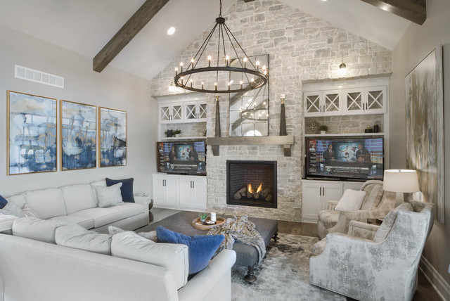 Свежая идея для дизайна: гостиная комната в стиле современная классика - отличное фото интерьера — Houzz