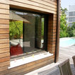Ambiance Cap-ferret, le rez-de chaussée est habillé d'un lambris bois naturel. Afin de mieux profiter de ce magnifique espace extérieur, le salon séjour de 45 m2 s'ouvre totalement par une large baie vitrée à galandage ; salon et terrasse ne font plus qu'un... Devant, la ville trépidante, à l'arrière, la quiétude...