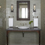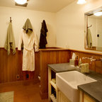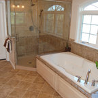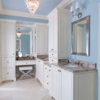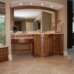 We utilized a Moroccan inspired mirror to accentuate and play with the unusual slanted roof line. By adding clean lines and ample drawers for storage, we were able to transform this outdated bathroom into a true modern master retreat.