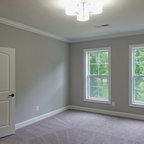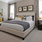 На фото: большая хозяйская спальня в классическом стиле с серыми стенами, ковровым покрытием и серым полом с — Houzz