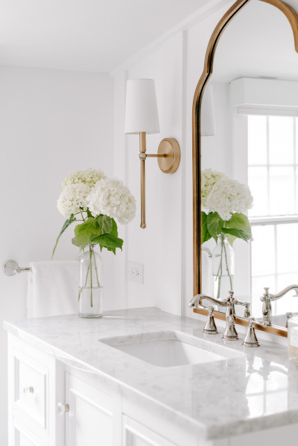 love mixed silver with gold silver faucet-gold sconces-gold mirror