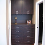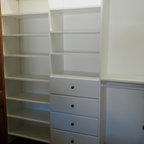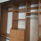 Drawers and open shelves for Mike’s closet, shoe shelves in corner