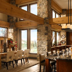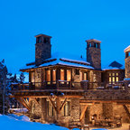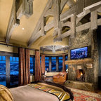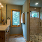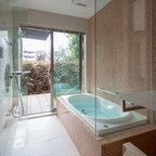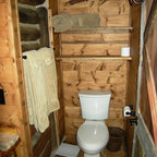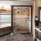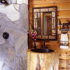 На фото: ванная комната в стиле рустика с накладной ванной с — Houzz