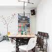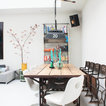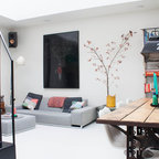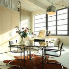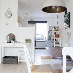 Неиссякаемый источник вдохновения для домашнего уюта: столовая в стиле фьюжн с белыми стенами и белым полом — Houzz