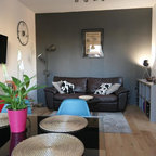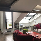 Пример оригинального дизайна интерьера: гостиная комната в современном стиле — Houzz