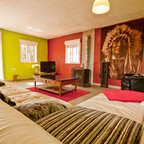 There is a lot of color, and the room has a lot of traffic.
