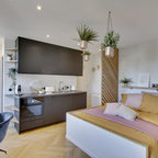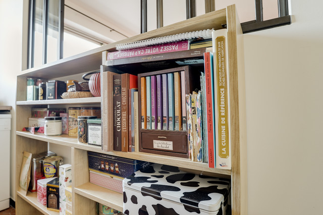 Un meuble sur-mesure vient la compléter et permet de conserver le volume de rangement.
