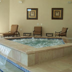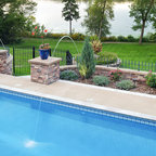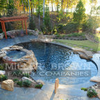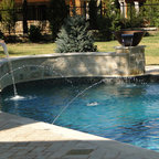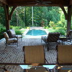 Свежая идея для дизайна: огромный спортивный бассейн произвольной формы на заднем дворе в классическом стиле с домиком у бассейна и мощением тротуарной плиткой - отличное фото интерьера — Houzz