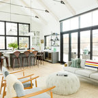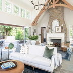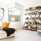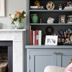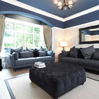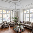 Стильный дизайн: открытая гостиная комната в классическом стиле с музыкальной комнатой и разноцветными стенами - последний тренд — Houzz