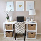 На фото: кабинет в стиле шебби-шик с белыми стенами, полом из керамогранита и белым полом с — Houzz
