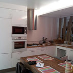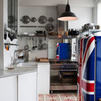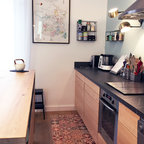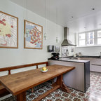 Новый формат декора квартиры: угловая кухня среднего размера в стиле фьюжн с обеденным столом без острова — Houzz