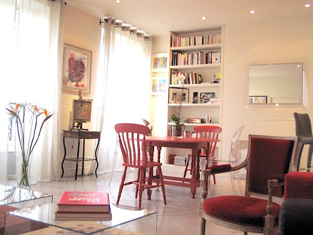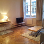 Récupération du parquet en point de Hongrie. Peinture grise sur parquet.