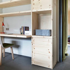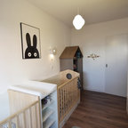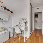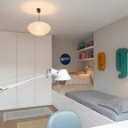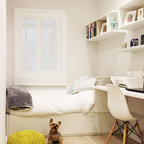 На фото: детская среднего размера в скандинавском стиле с спальным местом и бежевыми стенами для ребенка от 4 до 10 лет, девочки с — Houzz