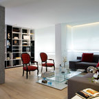 Пример оригинального дизайна интерьера: гостиная комната в современном стиле — Houzz